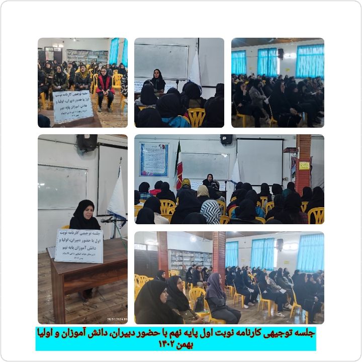 جلسه توجیهی کارنامه نوبت اول به همراه اولیا ودانش آموزان ودبیران پایه نهم بهمن 1402